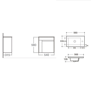 浴櫃組 Bath Unit 盆尺寸: 560x330x20毫米 Basin Size: 560x330x20mm 櫃尺寸: 540x315x580毫米 Cabinets Size: 540x315x580mm
