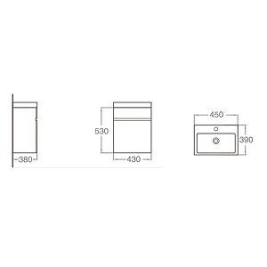 浴櫃組 Bath Unit 盆尺寸: 450x390x60毫米 Basin Size: 450x390x60mm 櫃尺寸: 430x380x530毫米 Cabinets Size: 430x380x530mm