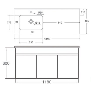 浴櫃組 Bath Unit 盆尺寸: 1215x465x20毫米 Basin Size: 1215x465x20mm 櫃尺寸: 1180x445x600毫米 Cabinets Size: 1180x445x600mm