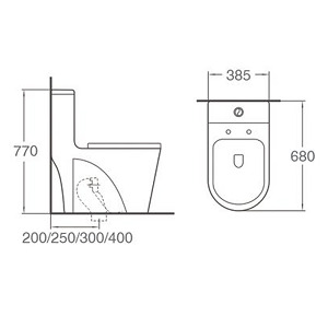 Super swirl one-piece Toilet Flush Mode: Super swirl Size: 680x385x770mm S-trap,200/250/300/400mm Roughing-in 超漩式單體馬桶 沖水方式:超漩式 尺寸:680x385x770毫米 地排汙口中心離牆:200、250、300、400毫米