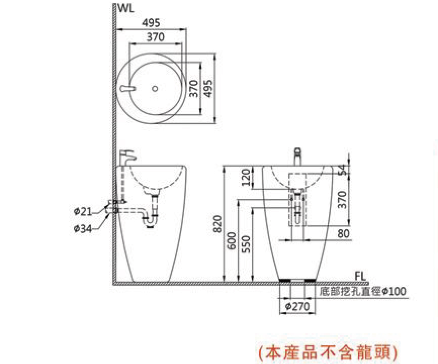 ※本產品不含面盆龍頭及落水配件