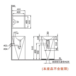 ※本產品不含面盆龍頭及落水配件