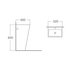 Pedestal Basin Size: 520x460x840mm Fixing to wall with back 落地柱盆 尺寸: 520x460x840mm背靠牆式安裝