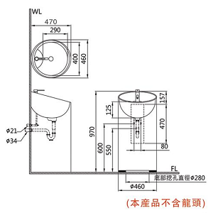 ※本產品不含面盆龍頭及落水配件