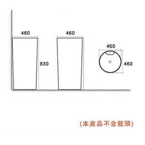Pedestal Basin Size: 460x460x830mm Fixing to wall with back 落地柱盆 尺寸: 460x460x830mm背靠牆式安裝