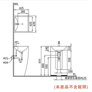 ※本產品不含面盆龍頭及落水配件